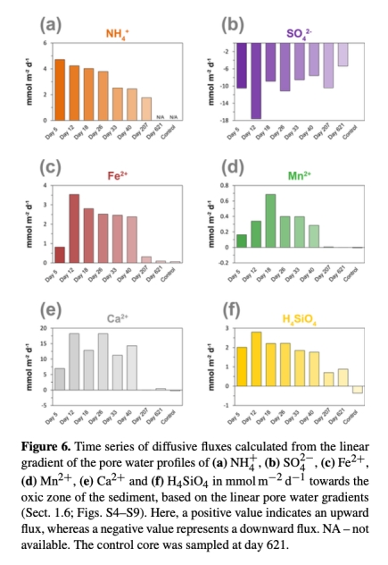 ? 數(shù)據(jù):Fe2?上涌通量峰值3.16 mmol m?2 d?1(12天),Ca2?通量18 mmol m?2 d?1。