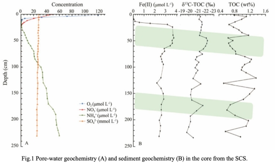? 數(shù)據(jù):DO穿透深度16 cm,NO??穿透深度30 cm;Fe(II)峰值濃度2.33 μmol/L(25-230 cm層)