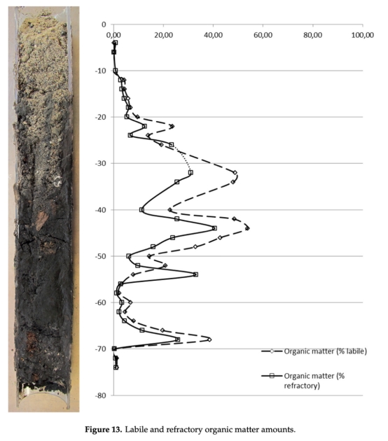? 數(shù)據(jù):腐泥層(10-20 cm)含水率64.3%、有機(jī)質(zhì)11.5%(易降解碳占50%);沙層含水率僅17.5%。
