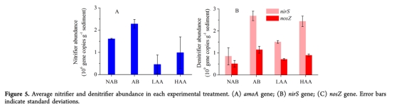? 意義:HAA處理使硝化菌(amoA)豐度降至NAB處理的61%(0.99×10? vs 1.61×10? copies/g),導致反硝化底物供應中斷。