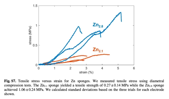 1. 解決傳統鋅海綿電極體積容量低(<450 mAh cm?3)、機械強度差(易碎裂)的缺陷