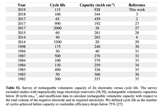 ? 意義:刷新鋅電極體積容量紀錄(較文獻最高值提升102%,表S1)