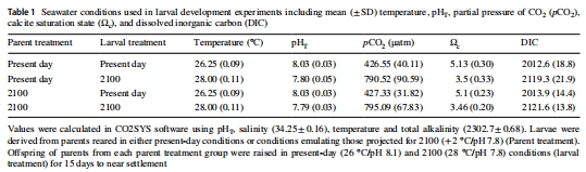 1.驗證父母馴化(acclimation)能否增強后代對海洋升溫和酸化的抵抗力;