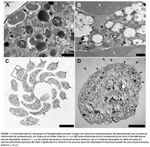 1. 盜質(zhì)體源自附生硅藻(如Navicula和Nitzschia屬),定位在細(xì)胞外圍靠近孔塞處(圖1D),優(yōu)化光捕獲;