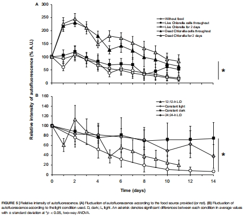 無食物時(shí)自體熒光11天內(nèi)衰減81%(圖5A);