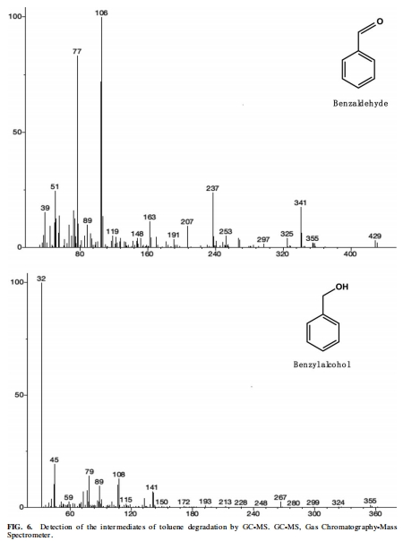 GC-MS檢測(cè)苯甲醇、苯甲醛等降解中間體(圖6);