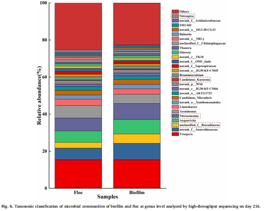 qPCR定量AOB/NOB/厭氧氨氧化菌,高通量測序鑒定菌屬(圖5-6);
