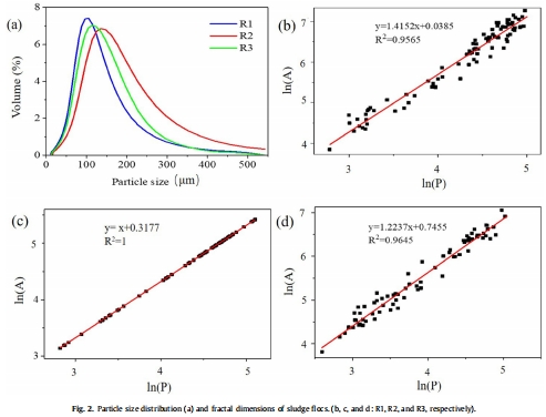 信號分子使絮體平均尺寸增大23%(圖2a),分形維數降低(圖2b-d),表明絮體不規則性與孔隙率提升;