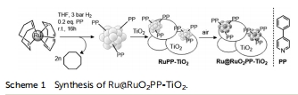 步驟3:可控氧化形成核殼結(jié)構(gòu)Ru@RuO?PP-TiO?,再錨定RuP光捕獲劑(Scheme 1)。