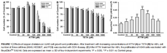 抗癌作用:高濃度 ATTM(≥250 μM)通過銅螯合抑制腫瘤生長(zhǎng)(圖 1A)。