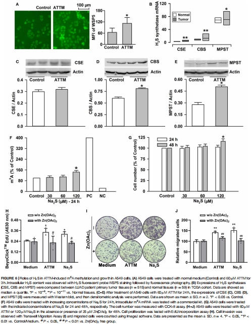 外源 H?S(Na?S)模擬 ATTM 效應(yīng):升高 m6A、促進(jìn)增殖/侵襲(圖 6F-J)。