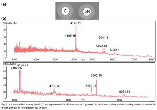 通過加氏乳桿菌 LM19(一種從母乳中分離的菌株)生產多種細菌素,包括新型細菌素氣體絲膠蛋白