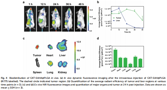 意義:PLGA外殼有效保護CAT活性,延長SAHA循環時間,解決裸酶易降解和HDAC抑制劑藥代動力學差的問題。