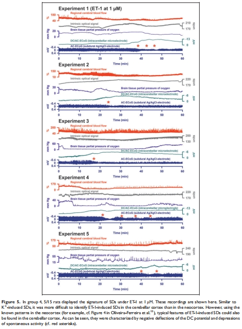 ET-1(1 μM)僅誘導(dǎo)33%動(dòng)物發(fā)生SD(5/15),遠(yuǎn)低于新皮層的80-100%(圖5)。