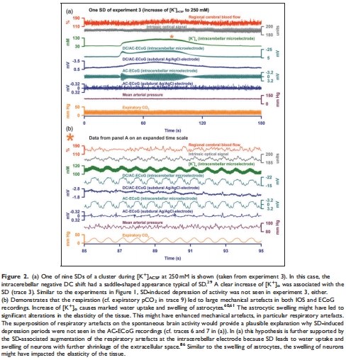 SD伴隨負(fù)DC偏移(-0.7至-8.3 mV)、rCBF增加(最高151%)、IOS升高(圖1b-c, 2a)。