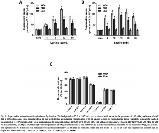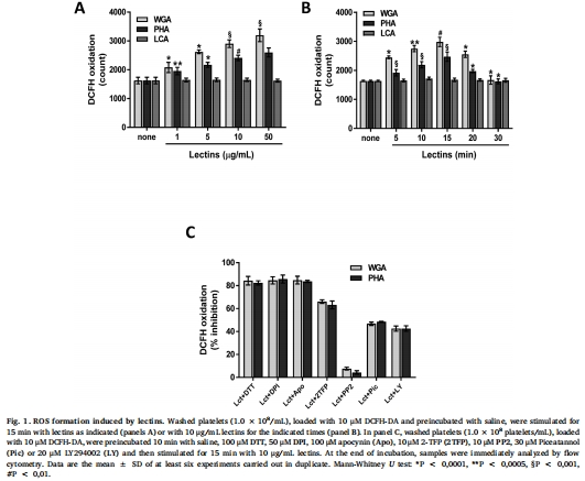 本研究首次揭示 小麥胚芽凝集素(WGA) 和 菜豆凝集素(PHA) 通過雙重機制誘導血小板氧化應(yīng)激: