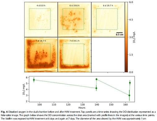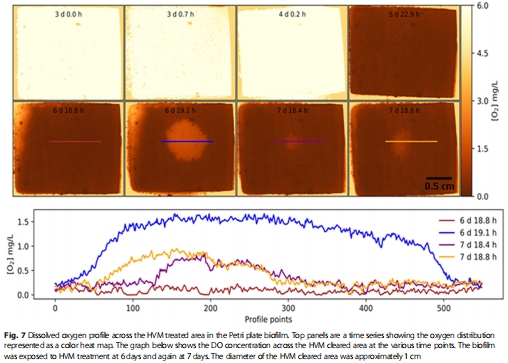 通過(guò) 平面光極系統(tǒng)(圖1)實(shí)時(shí)測(cè)量生物膜底部溶解氧(DO),對(duì)比HVM處理前后變化(圖6、7)。