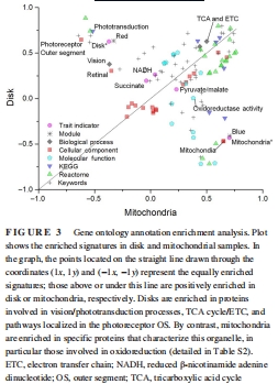 GO分析證實OS盤富集“視覺轉(zhuǎn)導(dǎo)”“TCA循環(huán)”“ETC”通路,線粒體富集“氧化還原”(圖3)。