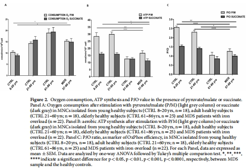 本研究通過分析單核細胞(MNCs)的能量代謝,揭示了鐵過載在MDS病理中的作用: