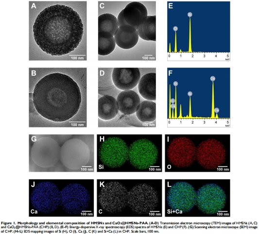 TEM/EDS確認(rèn)HMSNs空腔結(jié)構(gòu)(直徑300nm)及CaO?成功負(fù)載(圖1B,D,F);