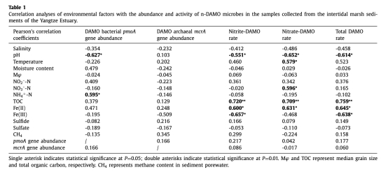 ? pH和TOC顯著影響活性,表明沉積物酸堿度和有機(jī)質(zhì)是調(diào)控n-DAMO過程的關(guān)鍵;