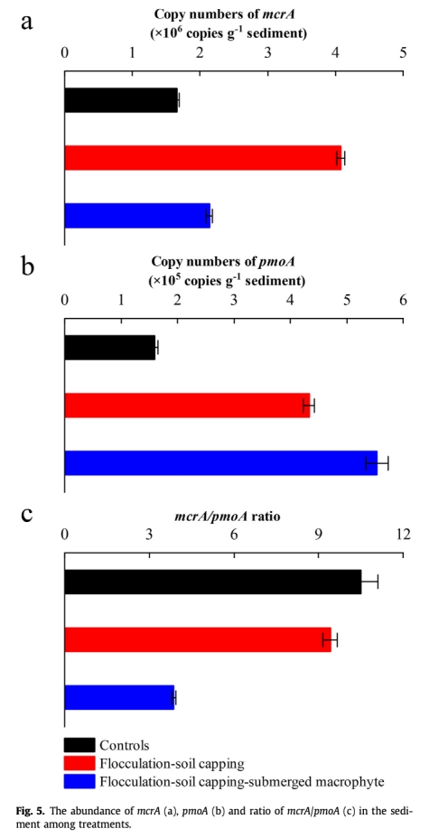 ? 微生物分析:qPCR定量mcrA/pmoA基因(圖5),高通量測序分析微生物群落(圖4)。
