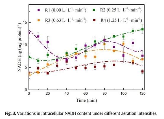 ? 數據:R2的NADH積累速率(0.061 ng/(mg Pro·min))顯著高于R3(0.016)、R4(0.013)。