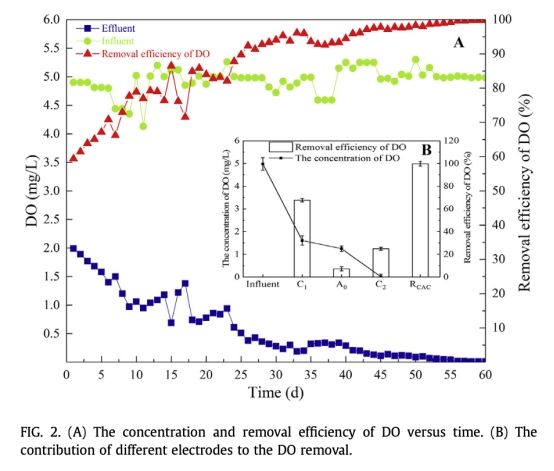 6. 電流和電極電位:顯示生物電極活性和外部電壓對(duì)DO去除的加速作用,意義在于確認(rèn)生物電化學(xué)機(jī)制的貢獻(xiàn)。