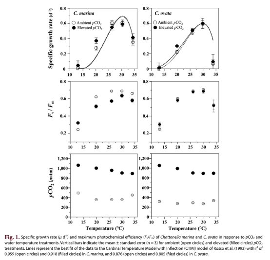Effect of elevated pCO2 on thermal performance of Chattonella marina and Chattonella ovata (Raphidophyceae)