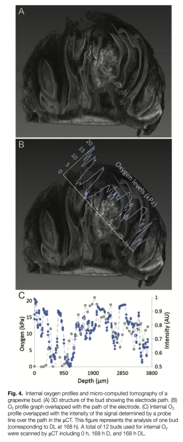 探究:1)葡萄芽爆發過程中胞外連絲孔徑的動態變化規律;2)光照和氧分壓對芽爆發啟動的調控作用;3)芽內部組織結構異質性對氧分布的影響機制。