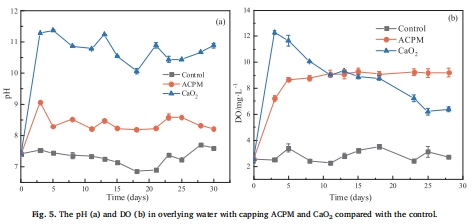 意義:反映覆蓋材料對水體整體環境的影響。ACPM能維持更穩定、適宜的pH和DO水平(圖5),避免了純CaO?導致的pH過高問題。同時,ACPM能有效吸附外源磷,保持上覆水低DIP濃度(圖6a)。