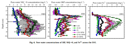 意義:直接反映界面附近的生物地球化學過程強度。數(shù)據(jù)顯示SPM沉積顯著提高了疏浚后沉積物孔隙水中的NH?-N、SRP和Fe2?濃度,表明其促進了還原條件的形成和營養(yǎng)鹽的釋放。
