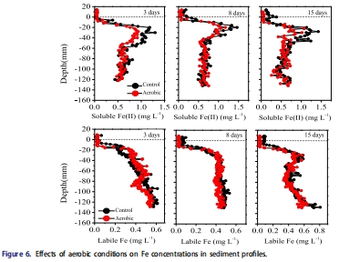 意義:好氧組孔隙水Fe(II)在3天后降低16%,且與SRP變化顯著正相關(表1),直接驗證磷釋放受鐵氧化還原控制(Fe(II)減少導致磷吸附增強)。