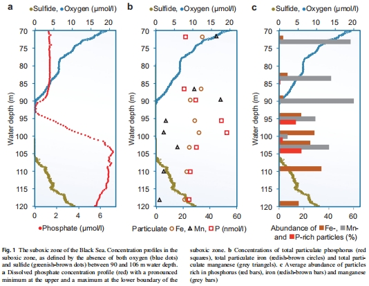 揭示黑海亞氧化帶磷酸鹽異常分布(上邊界最小值、下邊界最大值)的微生物驅動機制。