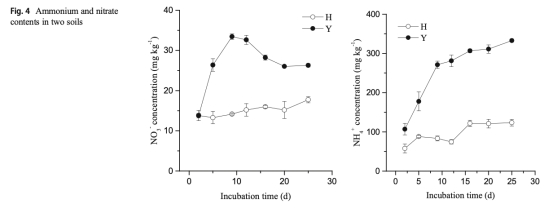 4. 銨和硝酸鹽濃度:來自Fig. 4,數據顯示氮礦化與碳分解同步,研究意義在于氮轉化反映有機質礦化,受鐵還原影響。