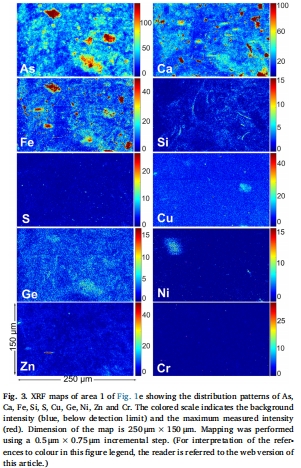 數據:As, Ca, Fe, Si, S, Cu等多種元素的二維分布圖。