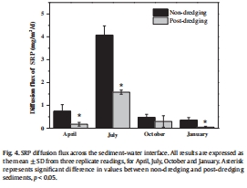 數(shù)據(jù):基于孔隙水SRP梯度計(jì)算的從沉積物向上覆水的擴(kuò)散通量。