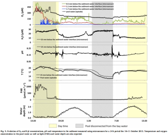 表征潮汐池沉積物如何響應(yīng)外部環(huán)境強(qiáng)迫(溫度、光照、水深)在潮汐和晝夜周期內(nèi)的變化。