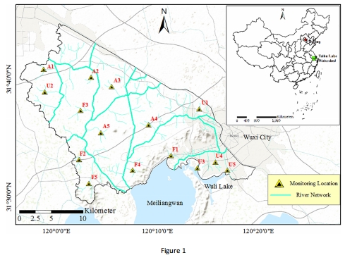 選址與采樣:在太湖梅梁灣流域選擇5條農業溪流、5條城市溪流和5條森林溪流(圖1)作為研究對象。在2014年3月至2015年3月期間,每兩個月采集一次水樣和流量數據(共144個樣品),以確保覆蓋季節變化。