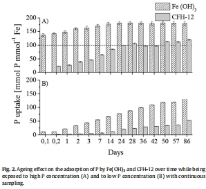 研究老化效應(yīng):考察CFH-12®和新鮮Fe(OH)?純相的磷吸附能力隨時間(老化)的變化,評估其長期有效性。