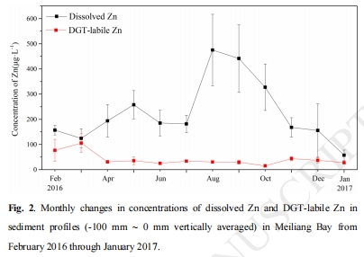 揭示鋅遷移性的時空動態:利用HR-Peeper和DGT技術,定量刻畫溶解態Zn和DGT有效態Zn在沉積物-水剖面中的月度垂直分布和季節變化規律。