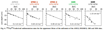 數據:沉積速率0.2-1.15 cm kyr?1(APEI3和GSR最低);生物擾動深度≤13 cm。