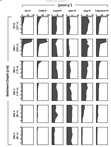 HPO?2?在表層沉積物中 depletion(BY15站點(diǎn)),可能與細(xì)菌吸收或礦物結(jié)合有關(guān)(圖8b)。