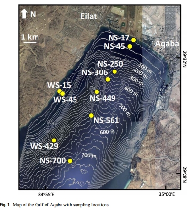 研究了紅海亞喀巴灣(Gulf of Aqaba)—一個受季節(jié)性洪水和風塵沉積影響的貧營養(yǎng)(oligotrophic)海系統(tǒng)—中不同滲透性沉積物的氧氣消耗動態(tài)。研究通過微電極(microelectrodes)和微光極(microoptodes)技術(shù),測量了南北和東西斷面不同水深站點(淺水15-45 m、中深250-561 m、深水700 m)沉積物的氧氣剖面,評估了沉積物-水界面的氧氣通量、消耗速率和滲透深度,并比較了兩種技術(shù)的性能及巖心運輸?shù)挠绊憽?