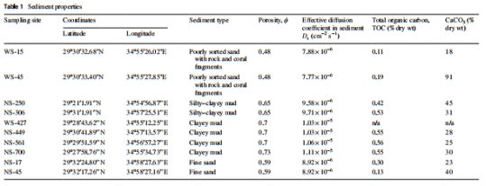 亞喀巴灣粘性沉積物的滲透性和耗氧量