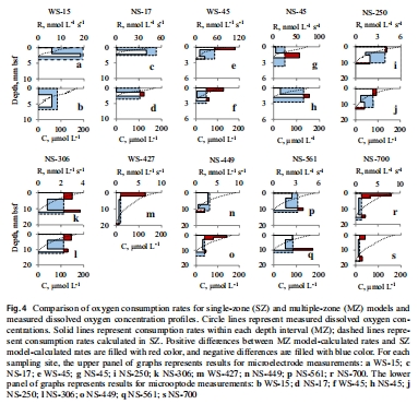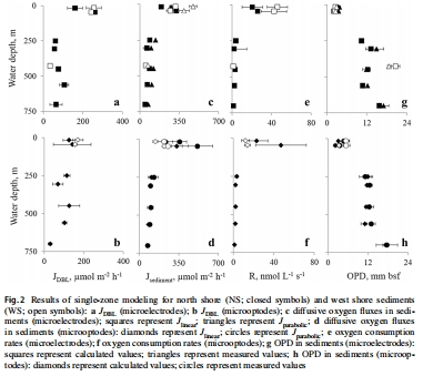數(shù)據(jù):氧氣剖面可分為2-4個消耗區(qū),淺水區(qū)消耗集中在表層(圖3、4)。