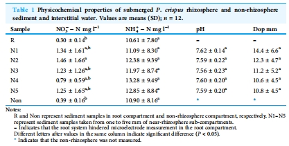 研究意義:NO?-N在近根際N2亞區最高,表明根際分泌物或硝化作用可能提供N-DAMO底物(亞硝酸鹽);Dop值較高(>10 mm)指示有氧層較厚,但根際耗氧可能創建局部厭氧微區,支持厭氧細菌如M. oxyfera-like細菌的生長。這些參數定義了根際生化梯度,解釋細菌分布模式。