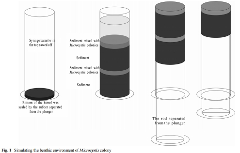 微宇宙構(gòu)建:在注射器筒中分層添加沉積物、Microcystis混合物和湖水,模擬沉積物-水界面(Fig. 1)。