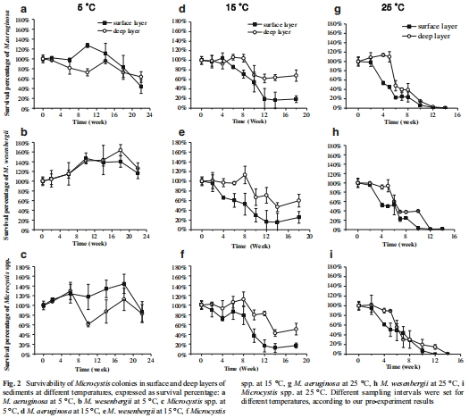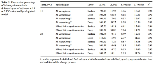 Quantitative study on the survivability of Microcystis colonies in lake sediments