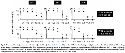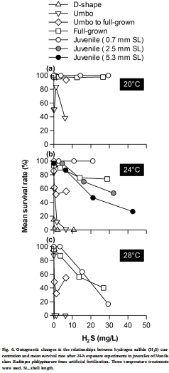 菲律賓馬尼早期拉蛤仔對缺氧和硫化氫耐受性和溫度依賴的變化